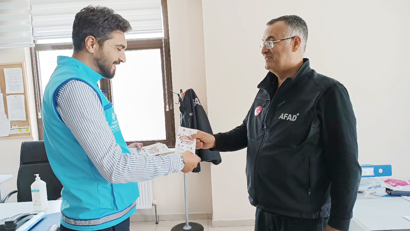 Valilik içindeki kurumlara broşür dağıtımı yapan Hac ve Umre Şube Müdürü Yusuf Özel, Din Hizmetleri Uzmanı Erhan Aydoğdu, TDV Uzman Yardımcısı Emrah Yadigar, İşkur ve Tarım ve Kırsal Kalkınmayı Destekleme Kurumu’na da TDV Kurban bağışı tanıtım broşürü dağıtımı yapılarak, kurum personeli bilgilendirildi.