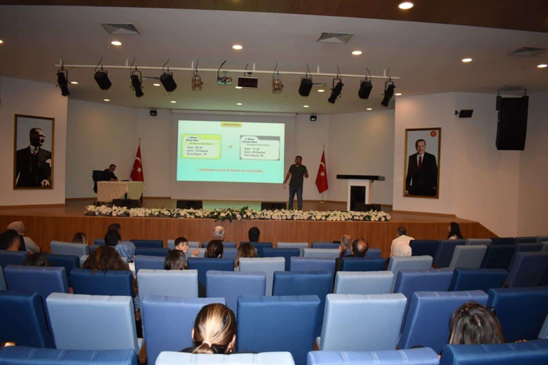 Açılış konuşmasının ardından Bilgi İşlem ve Sınav Hizmetlerinden sorumlu Şube Müdürü Latif Çetingöz ”Sınavla Öğrenci Alacak Ortaöğretim Kurumlarına İlişkin Merkezî Sınav Başvuru Ve Uygulama Kılavuzu” hakkında katılımcıları bilgilendirdi.