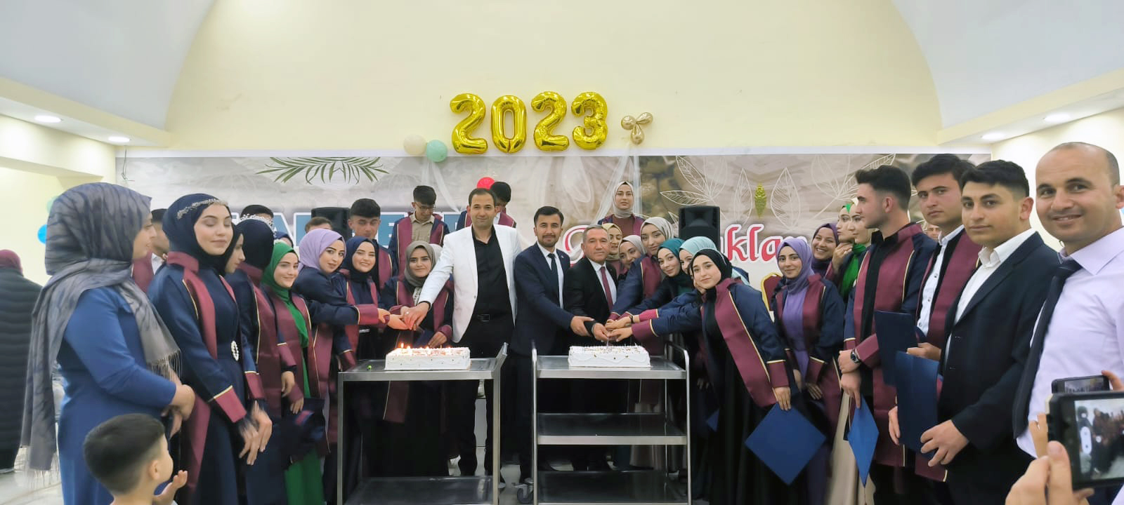 Kadışehri İlçe Milli Eğitim Müdürü Nuri Aksoy’n da katıldığı mezuniyet töreninde gençler pasta kesip, cübbe giydiler, havaya kep fırlattılar.