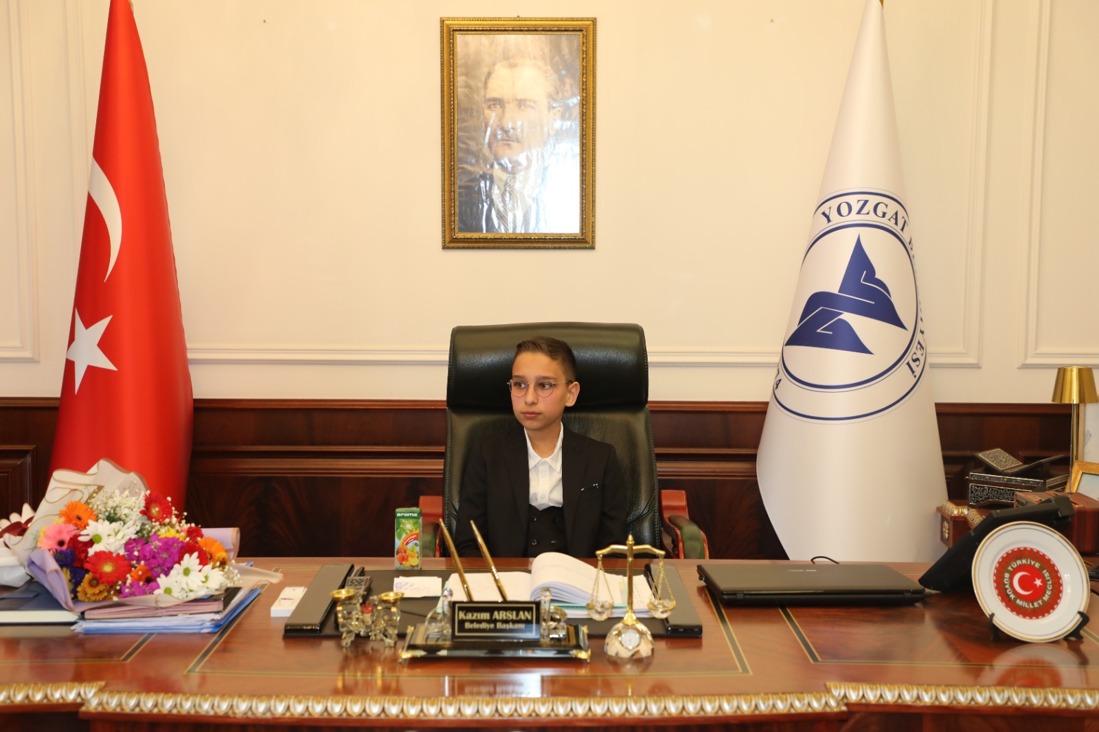 Yozgat Belediye Başkanı Dr. Kazım Arslan, Türkiye Büyük Millet Meclisi’nin açılışının 105’nci yılı ve 23 Nisan Ulusal Egemenlik ve Çocuk Bayramı dolayısıyla görevini miniklere devretti.