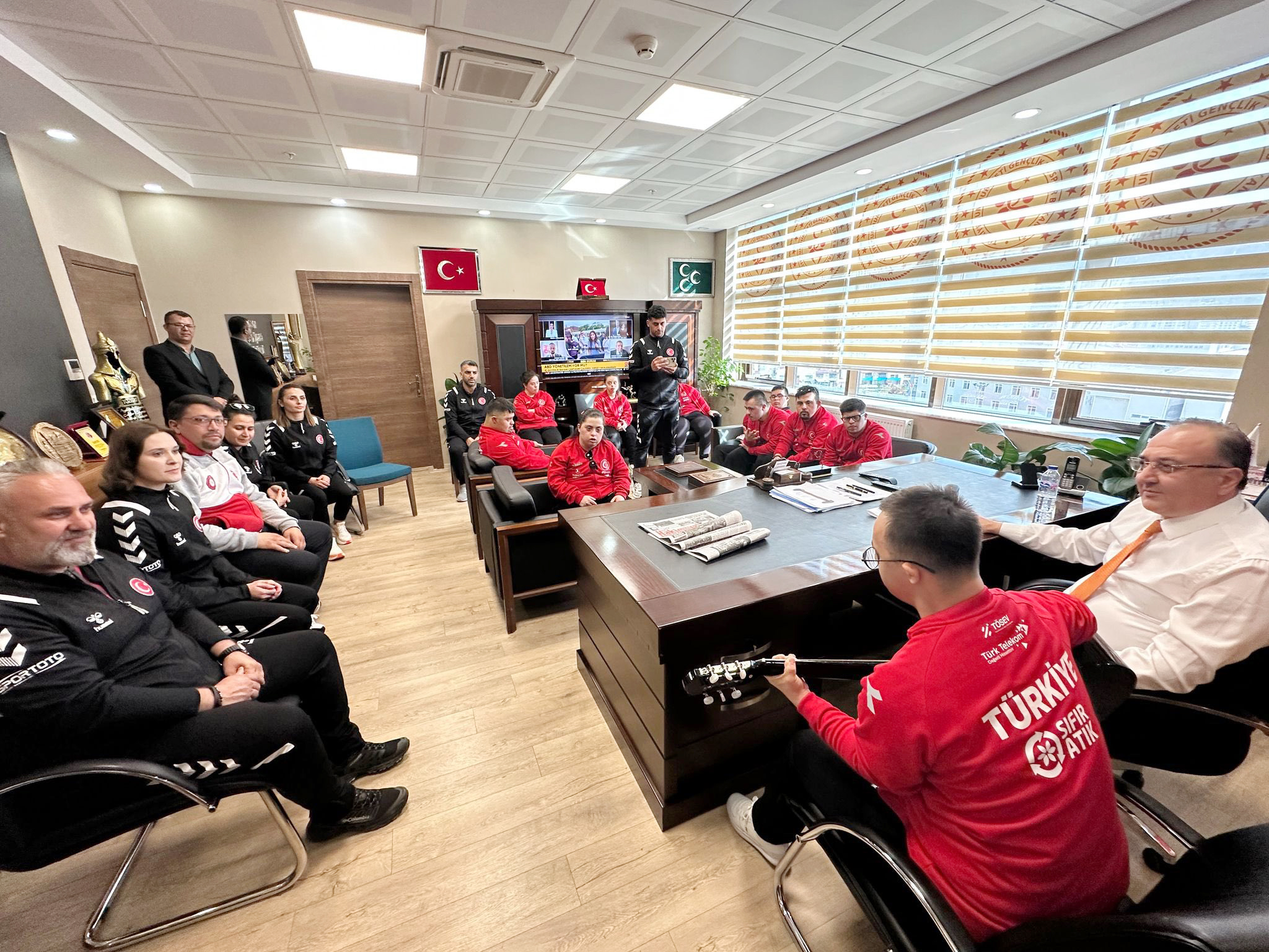 Şampiyona öncesi moral depolayan özel sporcular, bu özel günde İl Müdürü Hopur’un makam koltuğuna oturarak unutulmaz anlar yaşadı. Etkinlikte sporcuların mutluluğu gözlerden kaçmazken, Hopur da bu anlamlı buluşmanın 23 Nisan’ın ruhuna uygun bir atmosfer oluşturduğunu ifade etti.