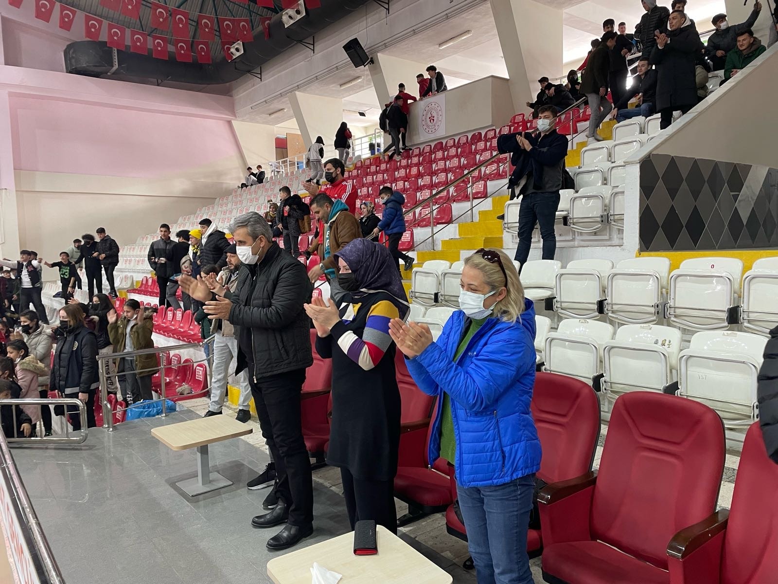Rıza Kayaalp spor salonunda oynanan karşılaşmayı Yozgat Valisi Ziya Polat’ın eşi Filiz Polat, Belediye Başkanı Celal Köse ve Eşi Nagihan Köse ve çok sayıda taraftar izledi.
