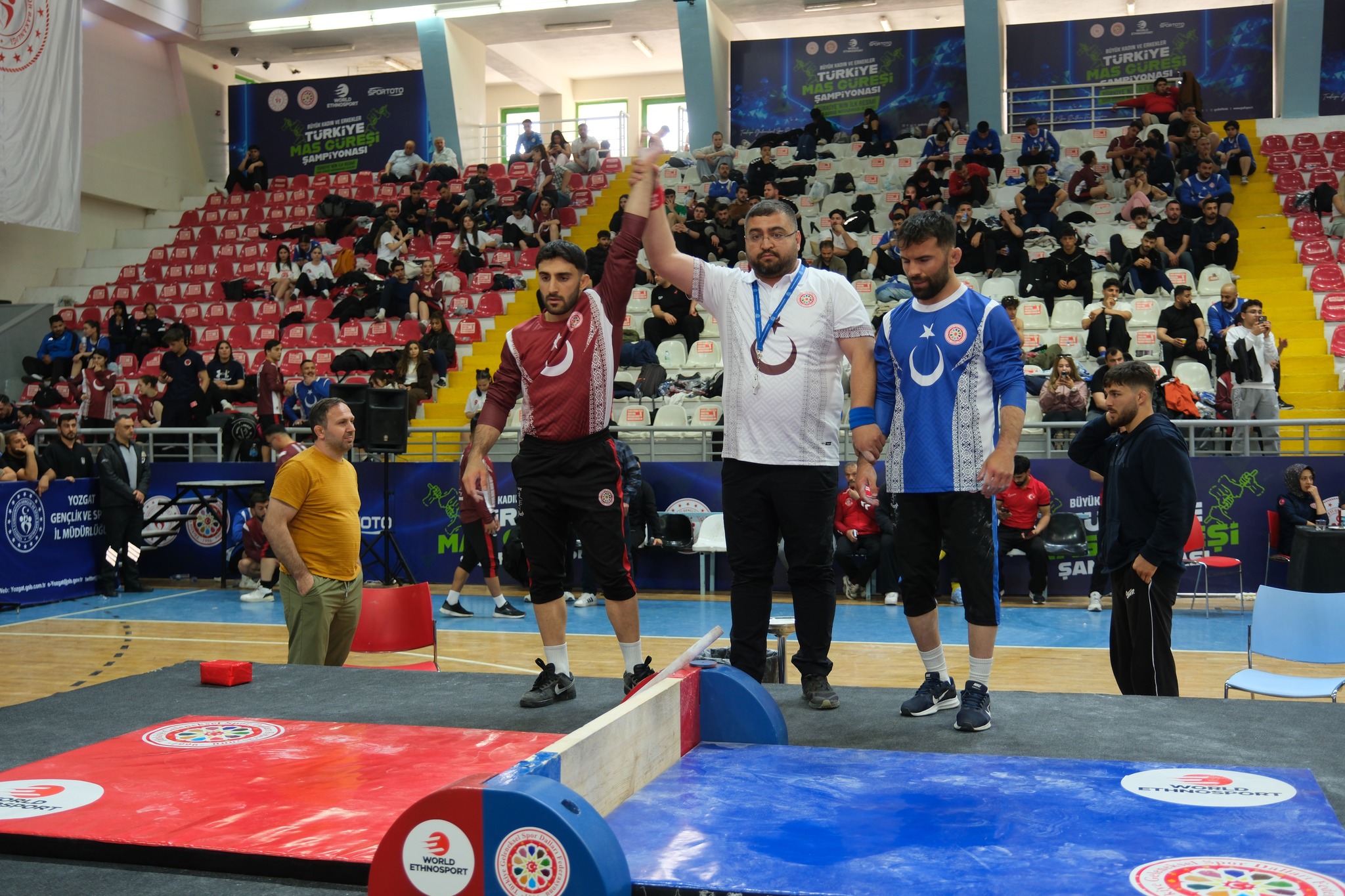 18 farklı ilden yaklaşık 500 sporcunun katılımıyla Türkiye’de ilk kez Yozgat’ta düzenlenen Mas Güreşi Türkiye Şampiyonası, Rıza Kayaalp Spor Salonu’nda gerçekleştirildi. Güç, teknik ve stratejinin ön planda olduğu müsabakalar izleyicilerden büyük ilgi gördü.