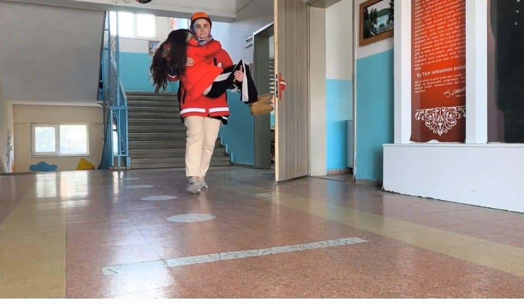 Tahliye sürecinin ardından Yozgat MEB AKUB ekipleri tarafından senaryo gereği sınıflarda kalan 3 öğrenci, itfaiyeci taşıma teknikleri kullanılarak güvenli alana çıkarıldı. Ayrıca dolabın devrilmesi sonucu yaralandığı varsayılan bir personel de sedye ile taşınarak bina dışındaki güvenli alana tahliye edildi.