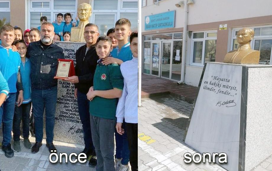 Boğazlıyan ilçesinde bulunan Şehit Lokman Darğın İmam Hatip Orta Okulu’nun bahçesinde bulunan Atatürk büstünü CHP Belediye Meclis Üyesi Sinan Budak tarafından yenilendi.