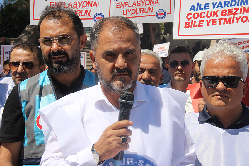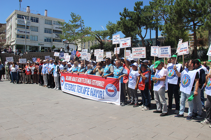 Şerefli sözlerini, “Gelirde adalet, ücrette denge istiyoruz. Yetersiz teklife hayır!” diyerek tamamladı.