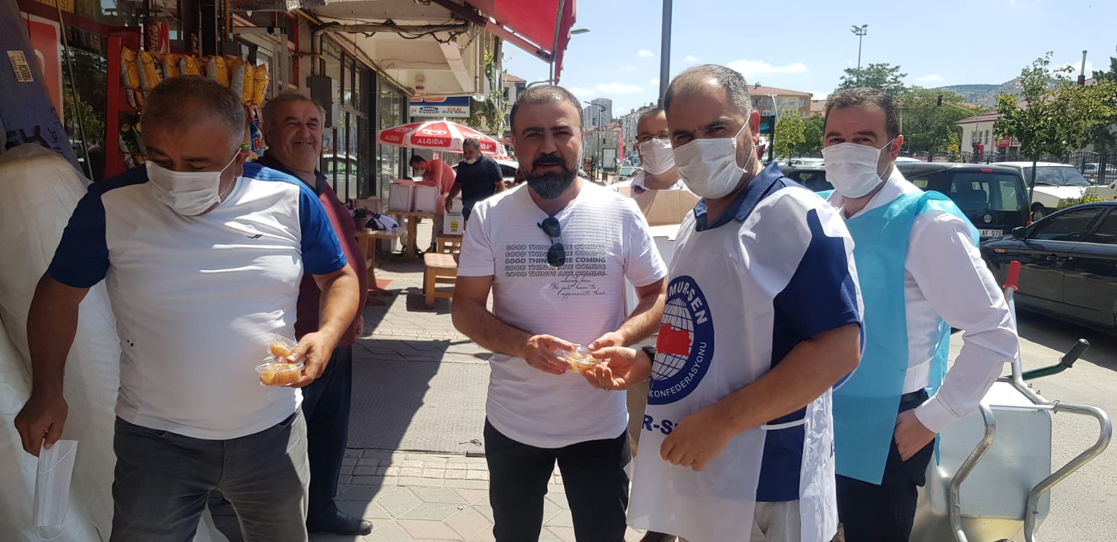 Memur Sen Yozgat Şube Başkanı Kenan Şerefli, beraberinde Sağlık Sen Yozgat Şube Başkanı Atakan Erciyas ve Memur Sen’e bağlı sendika başkanları ve üyeleri Ayasofya’nın yeniden ibadete açılması dolayısıyla vatandaşlara lokma tatlısı ikramında bulundu.