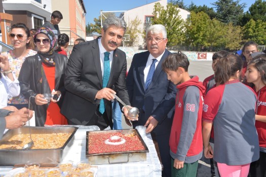 Okul bahçesinde düzenlenen etkinlikte; Yozgat Belediye Başkanı Celal Köse ve İl Milli Eğitim Müdürü Yusuf Yazıcı aşure kazanlarının başına geçerek öğrencilere aşure dağıttı.