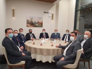 MHP Yozgat Milletvekili İbrahim Ethem Sedef öncülüğünde Sorgun Belediye Başkanı Erkut Ekinci, Akdağmadeni Belediye Başkanı Nezih Yalçın, Sarıkaya Belediye başkanı Ömer Açıkel, Şefaatli Belediye Başkanı Müjdat Karaca, Yenipazar Belediye Başkanı Menderes Baran, Çiğdemli Belediye Başkanı Ahmet Sungur, Araplı Belediye Başkanı Adem Ertuğrul, Oluközü Belediye Başkanı Hasan Aydınsoy ile birlikte Çevre ve Şehircilik Bakanı Murat Kurum’u makamında ziyaret ederek İlçe ve Belde belediyelerinin hizmet kalitelerini artırmak için hazırladıkları projeleri sunarak destek talebinde bulundular.