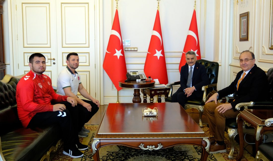 Başarılarıyla dikkat çeken Milli Güreşçi Bostan, İl Gençlik ve Spor Müdürü Şahin Hopur ile birlikte Yozgat Valisi Mehmet Ali Özkan’ı makamında ziyaret etti. Ziyarette, milli takıma seçilmenin gururunu yaşayan Bostan’a destek veren Vali Özkan, sporcuyu başarılarından dolayı tebrik etti ve milli forma altında göstereceği performans için kendisine başarılar diledi.