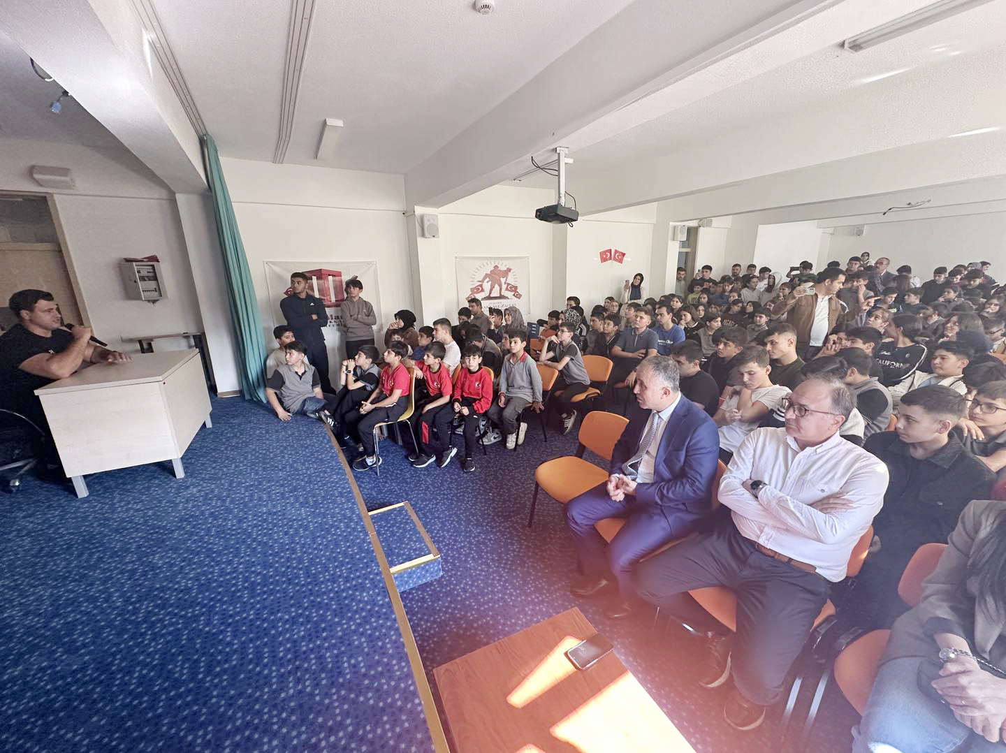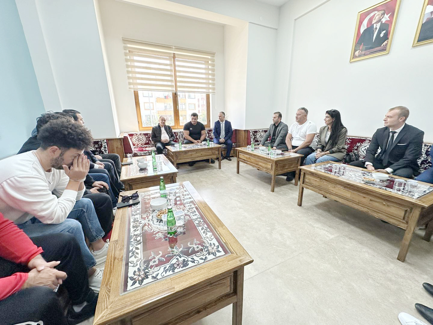 İl Müdürü Şahin Hopur ve Milli Sporcumuz Rıza Kayaalp, ziyaret kapsamında gençlerle sohbet ederek, spora yönelmeleri ve disiplinli çalışmanın önemi hakkında tavsiyelerde bulundu. Gençler, başarılarıyla ülkemize gurur yaşatan Kayaalp’in deneyimlerini dinleme fırsatı buldu.