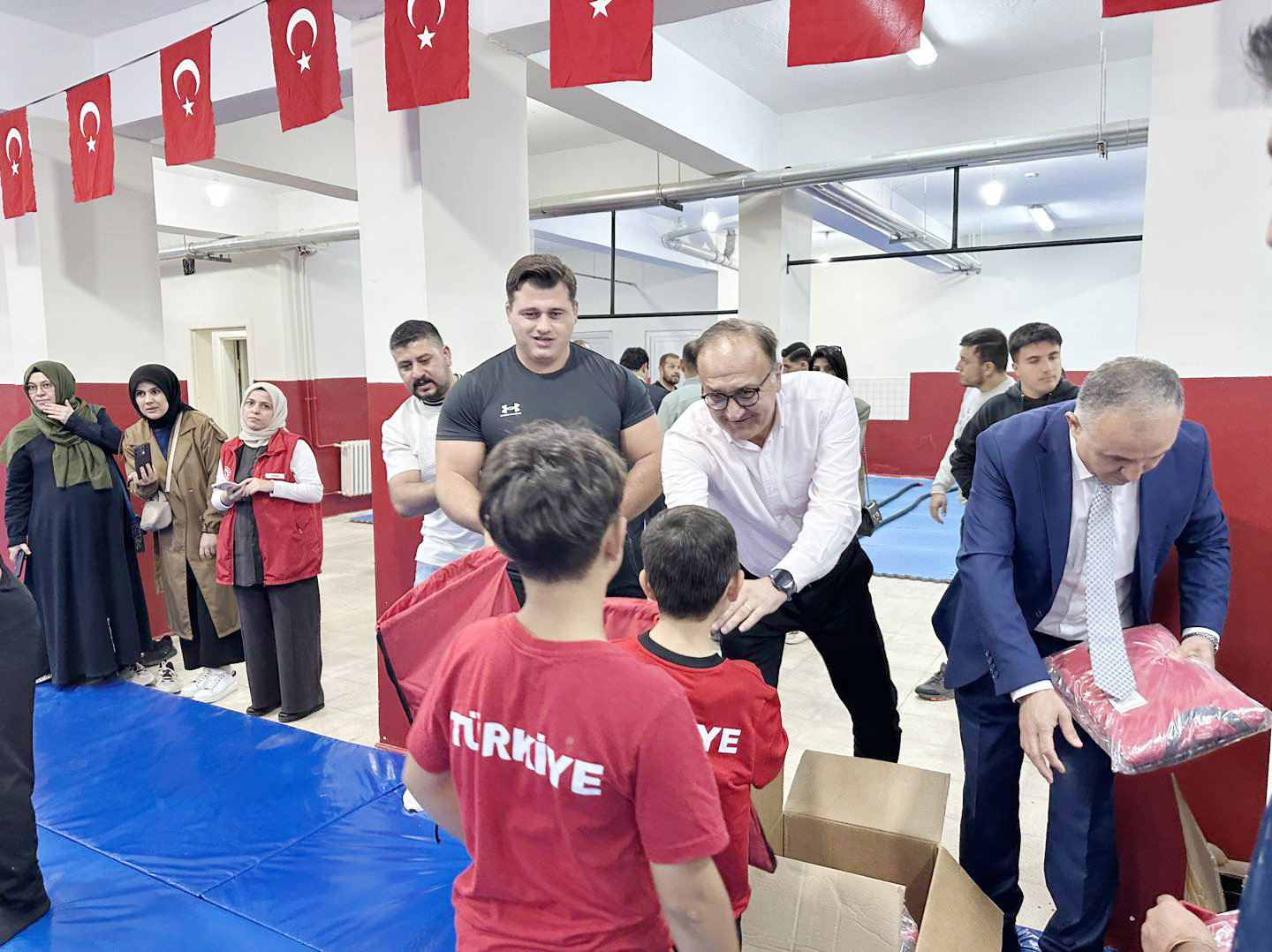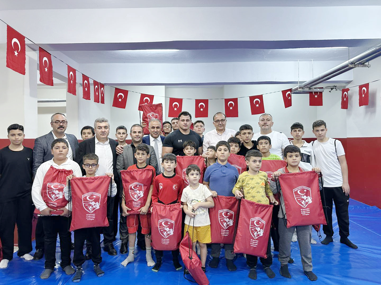 Ziyarette ayrıca, İlçe Müdürlüğü bünyesinde açılan güreş kursunu ziyaret eden Kayaalp ve Hopur, öğrencilere eşofman takımı hediye ederek motivasyonlarını artırdı.