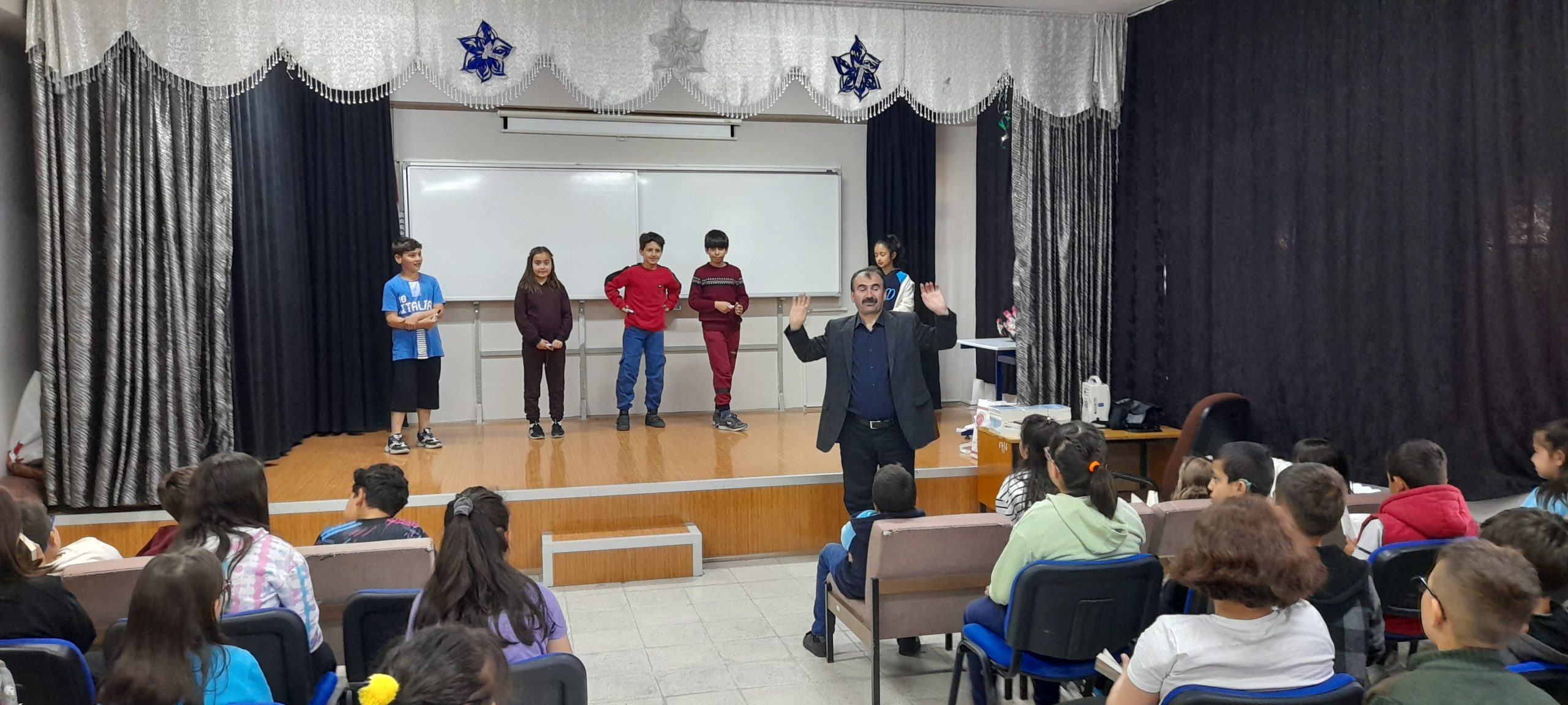 Çocuklara hediye kitaplarda dağıtılan etkinliğin sonunda öğretmenler ve okul müdürü Gamze Açıkgöz tarafından Prof. Dr. Mustafa Böyükata’ya teşekkür edildi. / Haber Merkezi