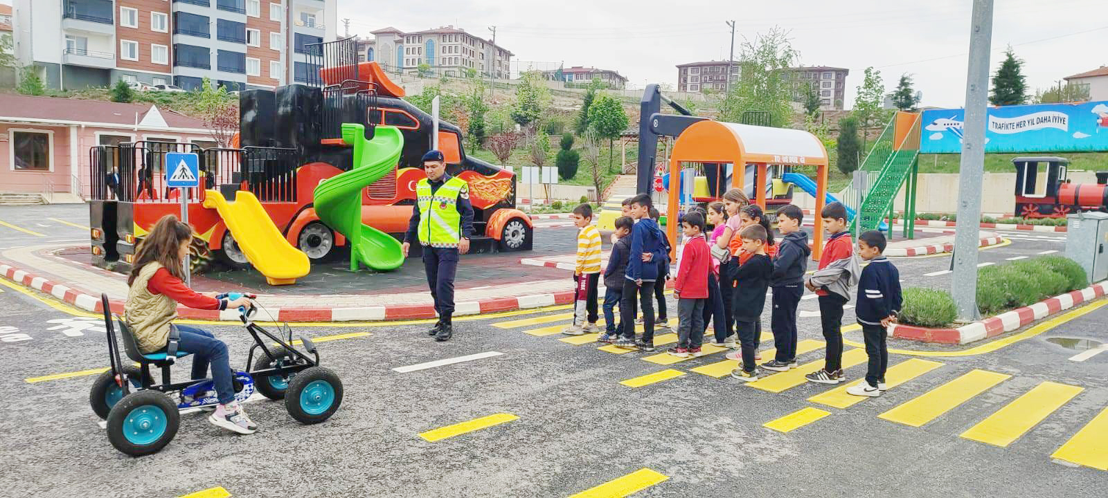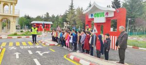 Bu çerçevede, Çocuk Trafik Eğitim Parkı’nda gerçekleştirilen program kapsamında, öğrencilere karşıdan karşıya geçme kuralları, trafik ışık kuralları, emniyet kemeri kullanımı gibi konularda detaylı ve uygulamalı eğitimler verildi.