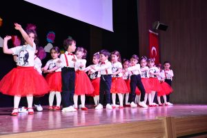 Programda; ilkokul 1. ve 2.sınıf öğrencilerin yanı sıra anaokulu öğrencilerinin; Anadolu ateşi dans gösterisi, horon, uğur böcekleri, ben Türk çocuğuyum dans gösterileri ve İngilizce şarkı koro ritim dansları gösterisi davetlilerden büyük alkış aldı.