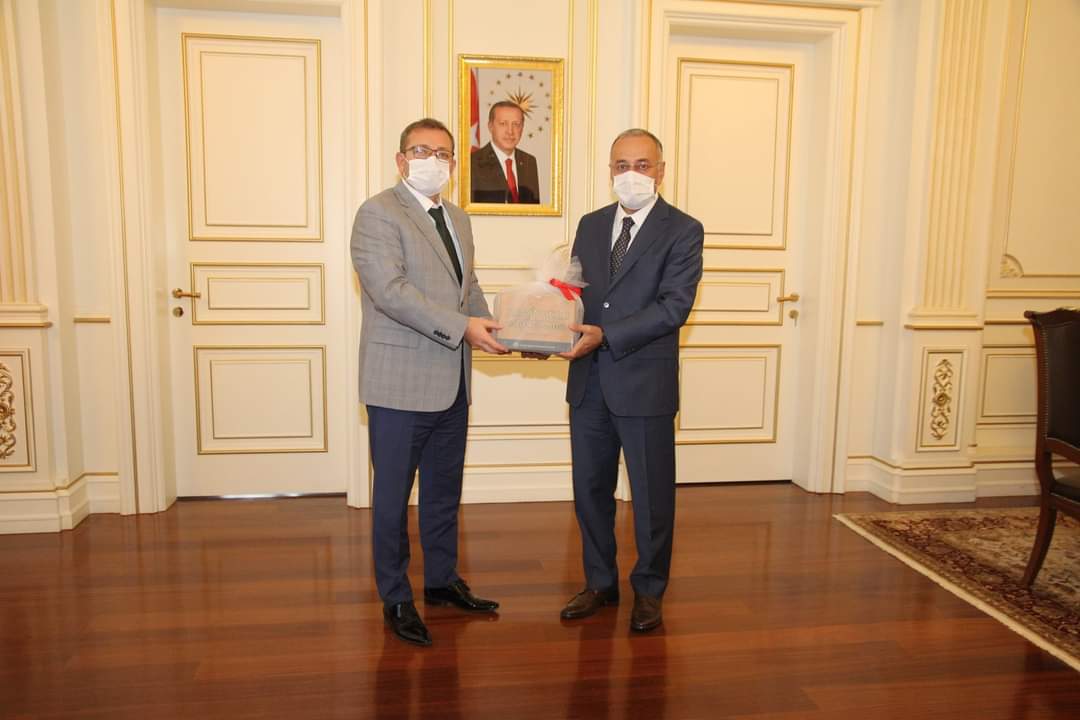 İl Müftüsü Salih Sezik, ziyaret anısına Vali Polat’a hediye takdim etti.