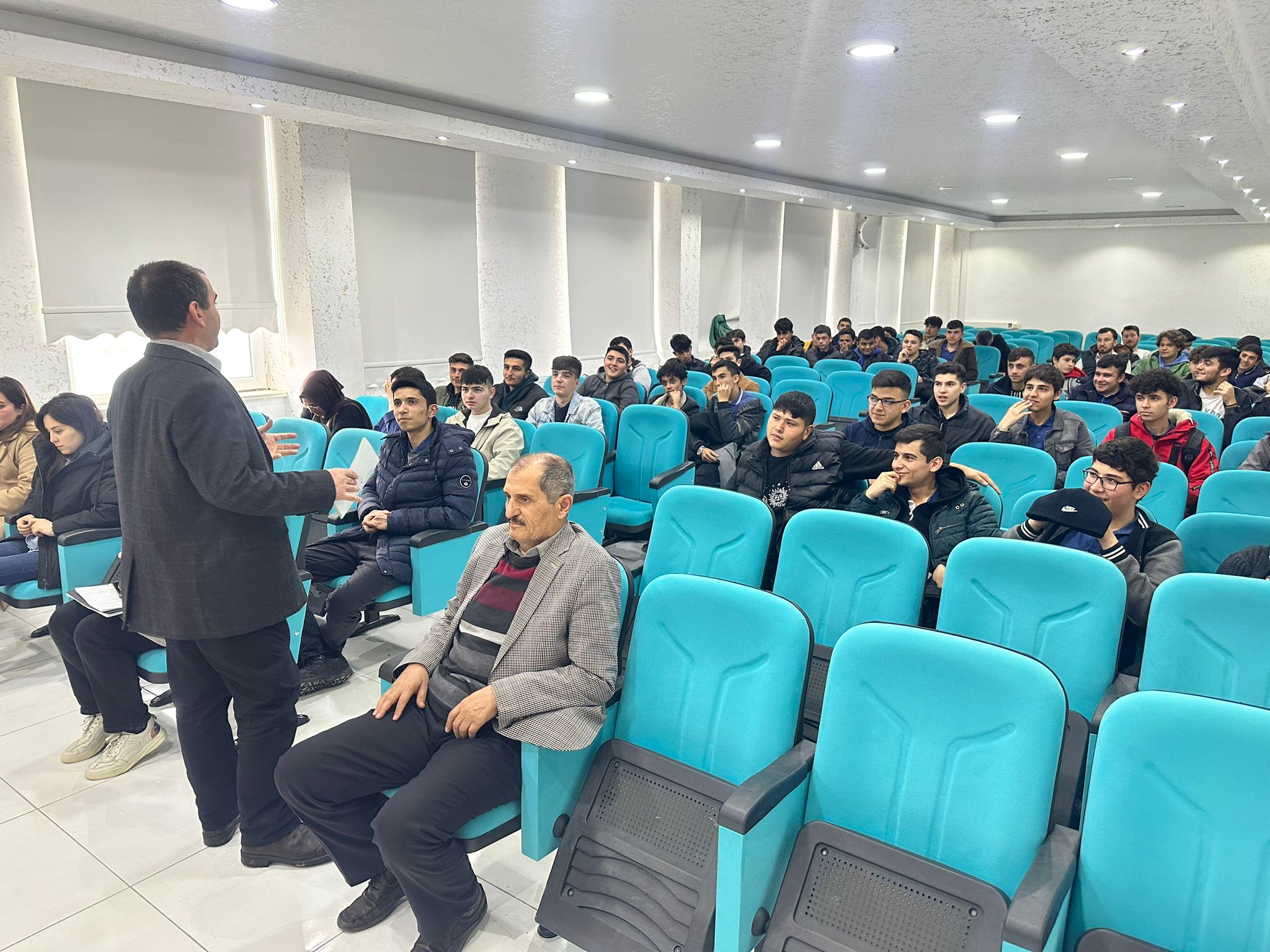 Yozgat – Yerköy – Hüseyin Erbaş Anadolu İmam Hatip Lisesi Müdürü Osman Bağcı’nın daveti üzerine okulun konferans salonunda lisenin öğrencileriyle ” Güçlü Gelecek için Donanımlı Genç Olmak” başlığı etrafından bilgilerini aktaran Prof. Dr. Mustafa Böyükata, tarım toplumu, modern toplum ve bilgi toplumu tanımlamaları üzerinden hareketle insanlık gelişimi içerisinde bilgi ve ekonominin aynı anda bir toplumu ne denli güçlü kıldığını örneklerle anlattı.