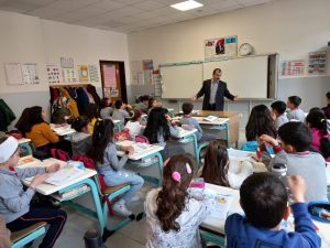 Yozgat – Yerköy – Şehit Kamil Çelikkaya İlkokulu Müdürü Hacı Bayram Ergenoğlu’nun daveti üzerine okulun 3’üncü sınıf öğrencilerini sınıflarında ayrı ayrı ziyaret eden Prof. Dr. Mustafa Böyükata, çocuklarla “Ben de yaparım” başlığı altında “mini söyleşiler” gerçekleştirdi.