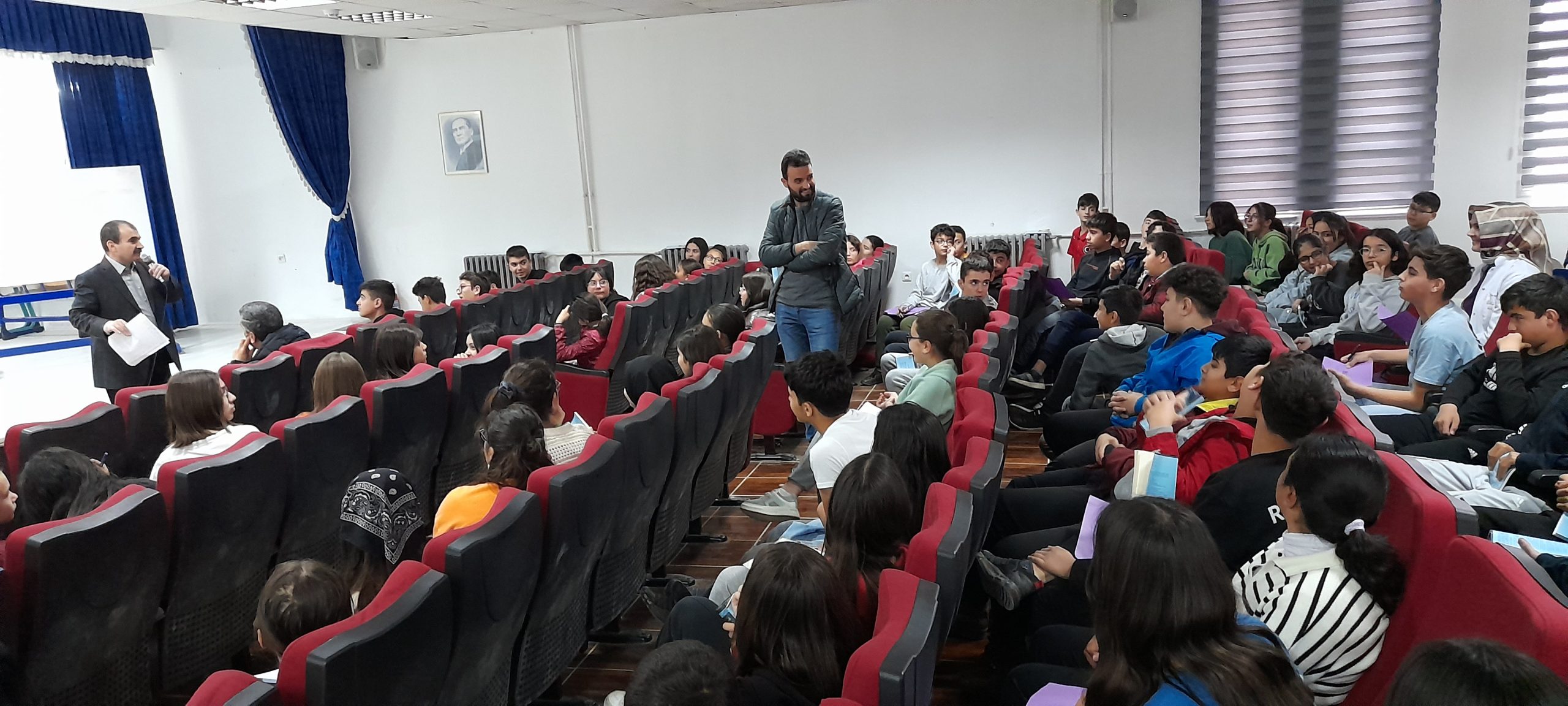 Yozgat – Yerköy – Şehit Muammer Nacakoğlu İmam Hatip Ortaokulu Müdürü İsmail Arslan’ın daveti üzerine ziyaret ettiği okulda 8’inci sınıf öğrencileriyle yaptığı söyleşide Prof. Dr. Mustafa Böyükata “Bilimle Uğraşmak İstiyorum ama Nasıl?” başlığı etrafında geniş çerçevede konulara değindi ve yer yer temel bazı kavramlar üzerinden de sohbeti derinleştirdi.