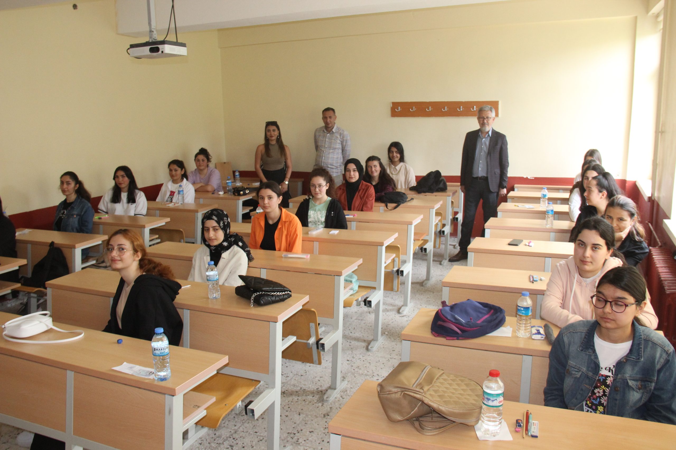 Yozgat Meslek Yüksek Okulu’nda gerçekleştirilen sınavda öğrenciler önce kimlik kontrolü ve üst aramasından geçirilerek sınıflara alındı. Saat 10:00’da başlayan sınava Sarıkaya’dan 200 öğrenci katılırken, AYÇ/TED-AD Kolejinden de öğrenciler katıldı.
