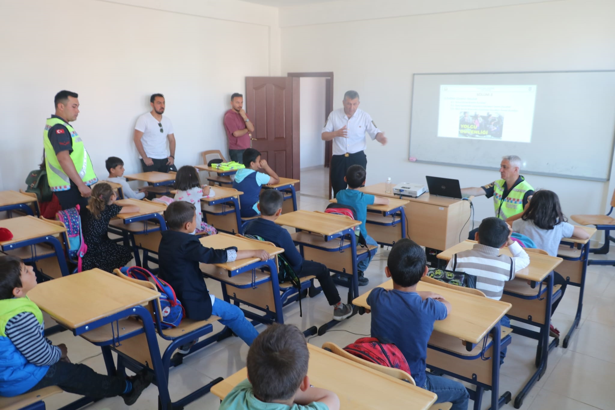 Eğitimde; okul servis araçlarında hareket tarzı, yaya ve okul geçitlerinin kullanımı, Özel araçlarda emniyet kemerinin kullanılmasının önemi, Karşıdan karşıya geçerken dikkat edilecek hususlar konusu uygulamalı olarak anlatıldı.