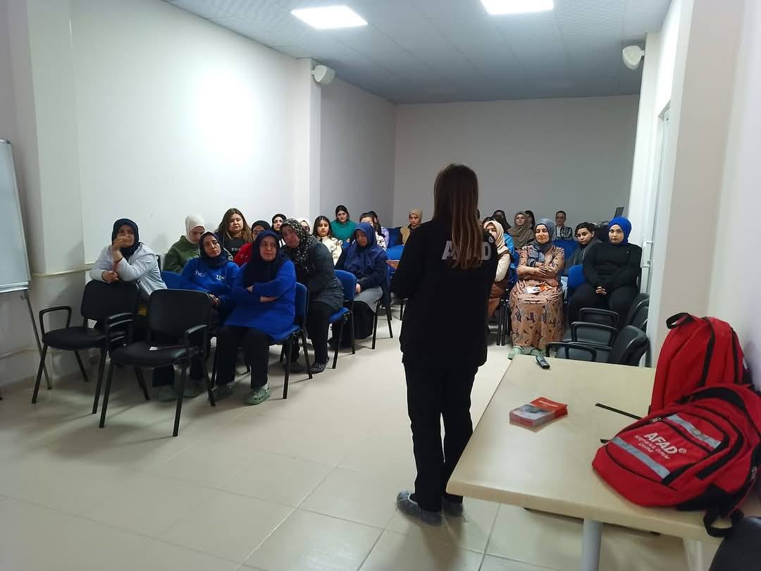 2025 Yılı Eğitim Faaliyetleri kapsamında gerçekleştirilen programda, deprem, sel ve yangın gibi afetler öncesinde, sırasında ve sonrasında yapılması gereken doğru davranışlar katılımcılara aktarıldı.