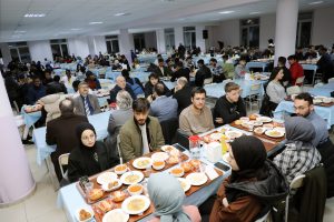 Üniversite Merkez Yemekhanesinde düzenlenen iftar yemeğine, Rektör Yardımcıları Prof. Dr. Şenol Akın, Prof. Dr. Güngör Yılmaz, Genel Sekreter Prof. Dr. Uğur Kölemen, fakültede dekanları, Üniversite Türkçe Öğretimi Araştırma ve Uygulama Merkezi (TÖMER) Müdürü Dr. Öğretim Üyesi Mehmet Volkan Demirel, öğretim elemanları ve öğrenciler katıldı.