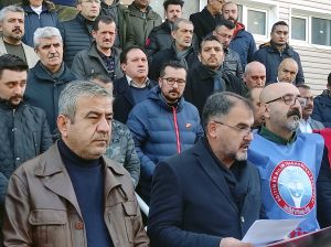 Eğitim çalışanlarının yalnız ve sahipsiz olmadıklarını vurgulayan Şerefli, “Eğitim-Öğretim yılının ilk döneminin bittiği, öğrencilerimizin karne heyecanı ve mutluluğu yaşayacağı, öğretmen ve eğitim çalışanlarımızın tatile girecekleri günde şu anda önünde bulunduğumuz Atatürk Mesleki ve Teknik Anadolu Lisemizde müdür yardımcısı olarak görev yapan öğretmen arkadaşımız Abuzer Akın İstiklal Marşı töreninde uyardığı öğrencinin yakını tarafından odasında bıçaklı saldırıya uğramış engellemeye çalışırken kafa darbesi ile yaralanmıştır. Ebuzer öğretmenimize, yöneticilerimize ve okulda görevli tüm öğretmen ve eğitim çalışanlarımıza geçmiş olsun diyor, arkadaşımıza yapılan bu menfur saldırıyı şiddetle kınıyoruz.Ebuzer arkadaşımızın, öğretmenlerimizin, eğitim çalışanlarımızın yalnız ve sahipsiz olmadıklarını buradan ilan ediyoruz.”dedi.