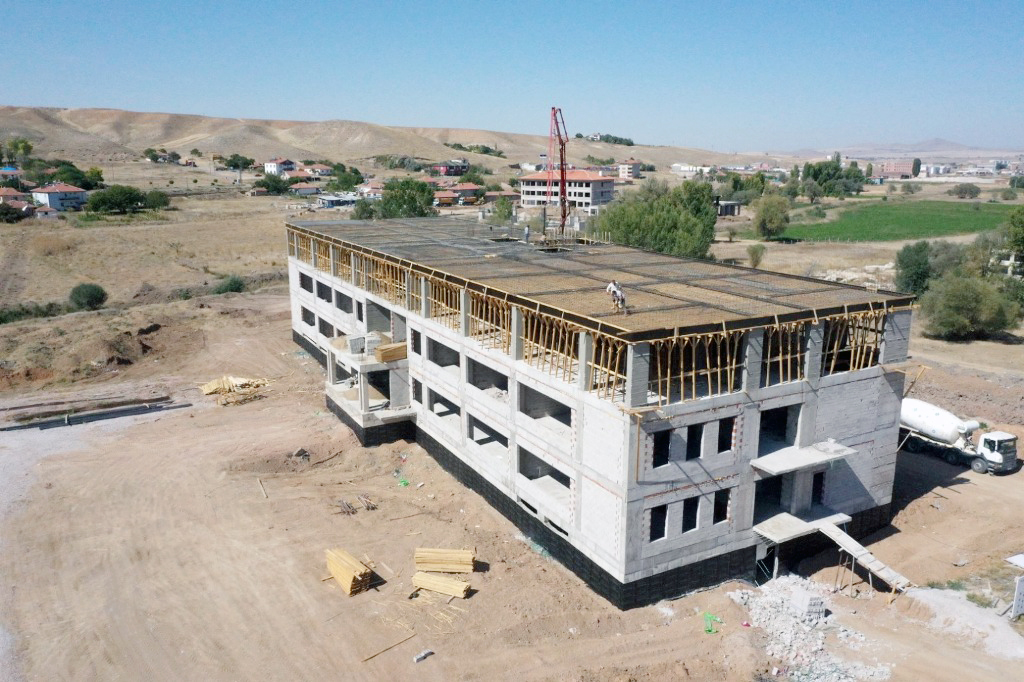 Sarıkaya Kaymakamı Ahmet Nuri Demir, ilçede yapımı devam eden 24 derslikli okulun inşaatını gezerek yetkililerden bilgi aldı.