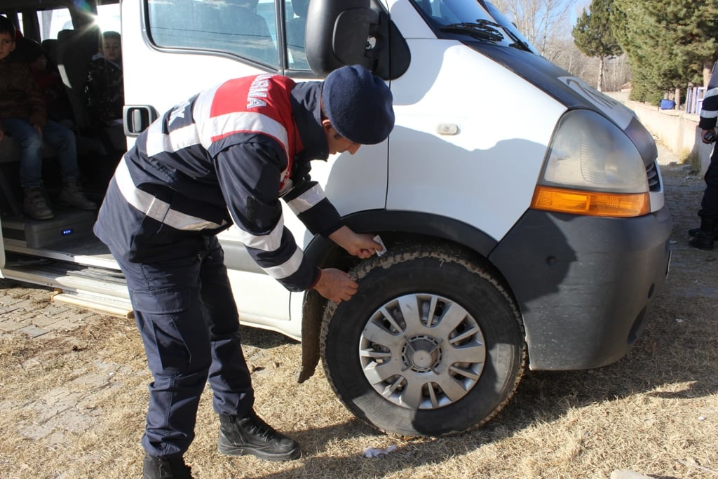 Sarıkaya İlçe Jandarma Komutanlığı trafik ekipleri, Karayakup Kınalı Hasan İmam Hatip Ortaokulu taşımalı eğitim gören ilk ve ortaokul öğrencilerini taşıyan öğrenci servislerine yönelik denetim yaptı.