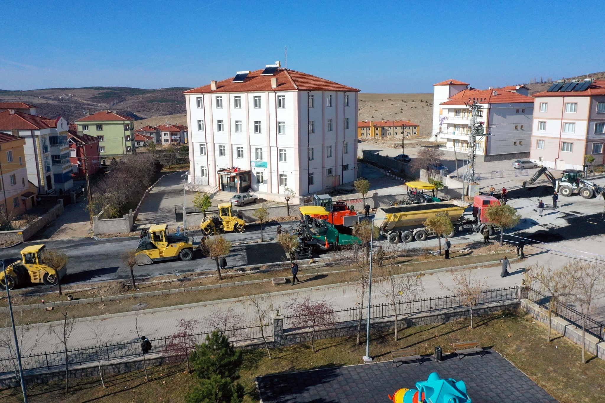 İlçenin ana arterleri başta olmak üzere birçok mahallede kış mevsimi öncesi sıcak asfalt çalışmalarımız devam ediyor.