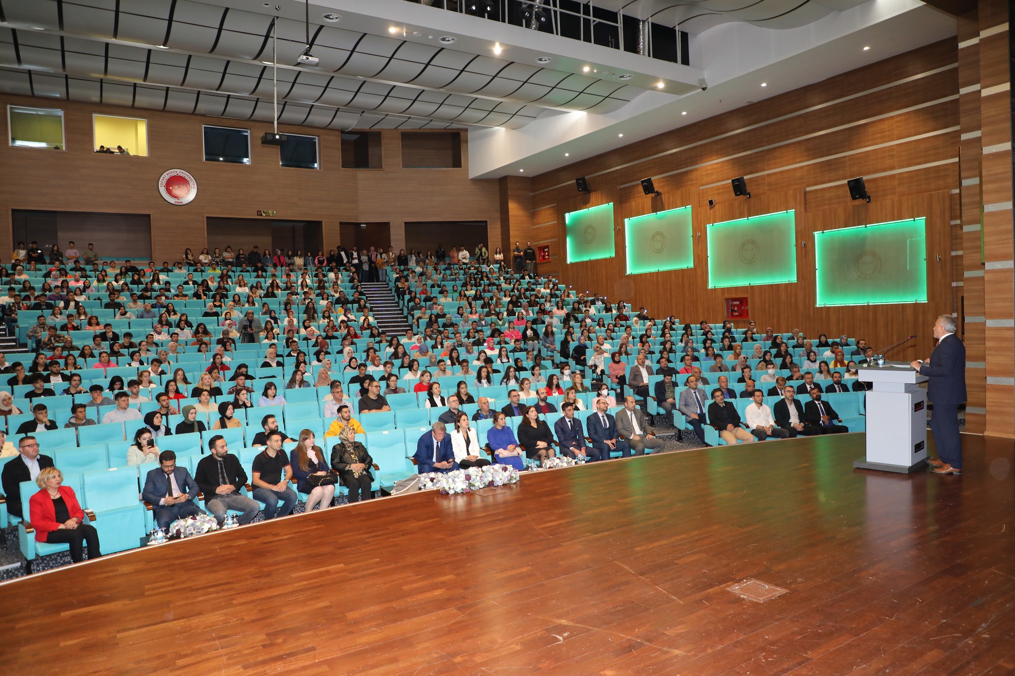 Öğrencilerin çalışma, azim ve gayretle hayallerini gerçeğe dönüştürerek yükseköğretim hayatına yelken açtığını belirten Rektör Prof. Dr. Ahmet Karadağ: “Hayatınızda beklentileriniz varsa hayallerinizin gerçekleşmesi için kendinize hedefler koyduysanız hayallerinizin gerçekleşmesi bu hayallerin başarıya dönüşmesi kaçınılmaz olmaktadır. O açıdan da bugün burada gördüğüm bu tablo hayallerini gerçeğe dönüştürerek kararlılık göstererek başarı hikayesi kaleme alanların tablosu. Bu sebeple bir kez daha sizleri kutluyorum” dedi.