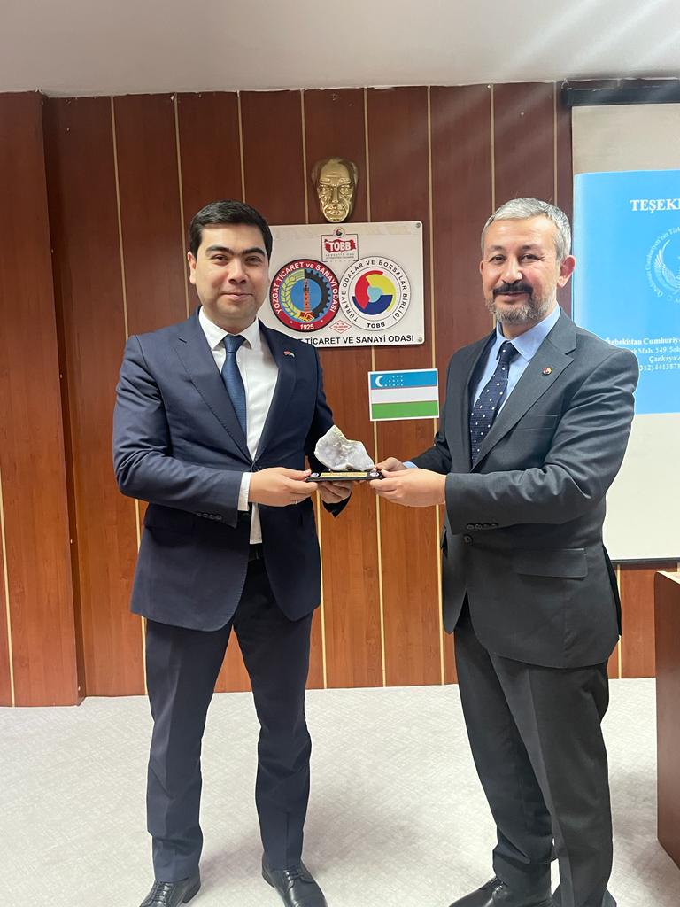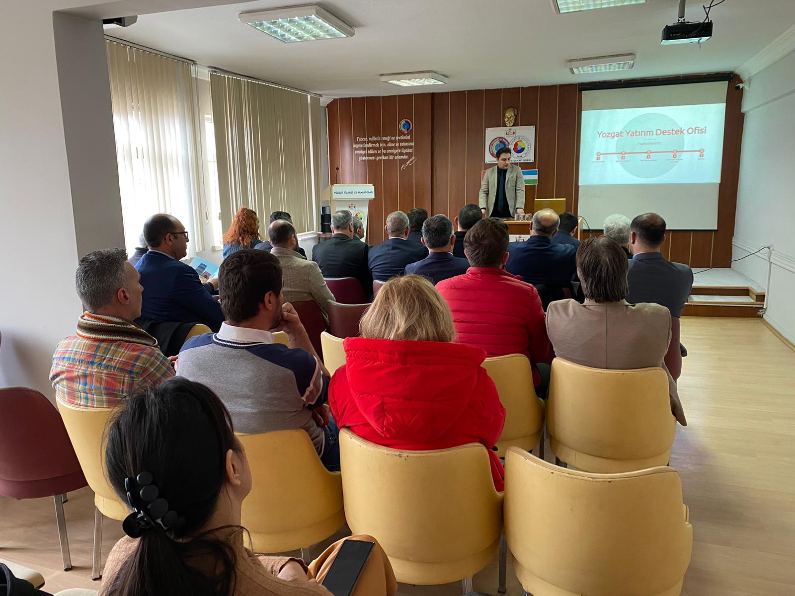 Yozgat Ticaret ve Sanayi Odası’nda Başkan Taylan Alakoç, Yozgat Ticaret Borsası, Yerköy Ticaret ve Sanayi Odası, Sorgun Ticaret ve Sanayi Odası, Boğazlıyan Ticaret ve Sanayi Odası Başkanları ve temsilcileri ile birlikte ağırladığı Özbekistan yetkililerine Yozgat hakkında bilgi verdi. Yozgat Sanayi ve Ticari Yatırım İşbirliği hususlarında bilgi alışverişi ve veri oluşturma çalışması yapmak üzere ziyarette bulunan heyet ile sohbet eden Yozgat Ticaretinin temsilcileri heyete Yozgat Teknopark, Organize Sanayi Bölgelerini gezdirdiler. Toplantıya Yozgat Ticaret ve Sanayi Odası Başkanı Taylan Alakoç, Yozgat Ticaret Borsası Başkanı Mehmet Erkekli, Yerköy Ticaret ve Sanayi Odası Başkanı Coşkun Kahraman, Sorgun Ticaret ve Sanayi Odası Başkanı Üzeyir Arslan, Boğazlıyan Ticaret ve Sanayi Odası Başkanı Öcal Öcalan ve temsilcileri ile Yozgat-Yerköy Organize Sanayi Bölgesi Müdürü Erdoğan Öztürk, TKDK Yozgat İl Koordinatörü Selim Türker, KOSGEB İl Müdürü Mustafa Işık, Ticaret İl Müdürü İbrahim Akdaş, ORAN Orta Anadolu Kalkınma Ajansı Yozgat İl Koordinatörü Doğu Sezen, Bozok Üniversitesi Öğretim üyeleri, Bozok Üniversitesi Teknopark Yetkilisi ile iş dünyasının temsilcileri katıldı. Yozgat Ticaret ve Sanayi Odası Başkanı Taylan Alakoç, Büyükelçilik yetkilileri ile verimli bir toplantı gerçekleştirdiklerini söyledi. Özbekistan Cumhuriyeti ile yapılabilecek sanayi yatırımı ve dış ticaret hususlarında ön değerlendirmeler olduğunu dile getiren Alakoç, ‘’Özbekistan Cumhuriyeti Devlet yetkililerine, İlimize gösterdiği alakadan dolayı teşekkür ederim. Yozgat’ımızın gelişmesi ve büyümesi için gece gündüz demeden çalışacağız, dünyanın neresinde olursa olsun Yozgat’ımıza yatırım yapmaları için biz üzerimize düşeni yapmaya devam edeceğiz. Ben tekrar şahsım ve odamız adına katılım sağlayan herkese tekrar teşekkür ediyorum’’ dedi. Haber Merkezi