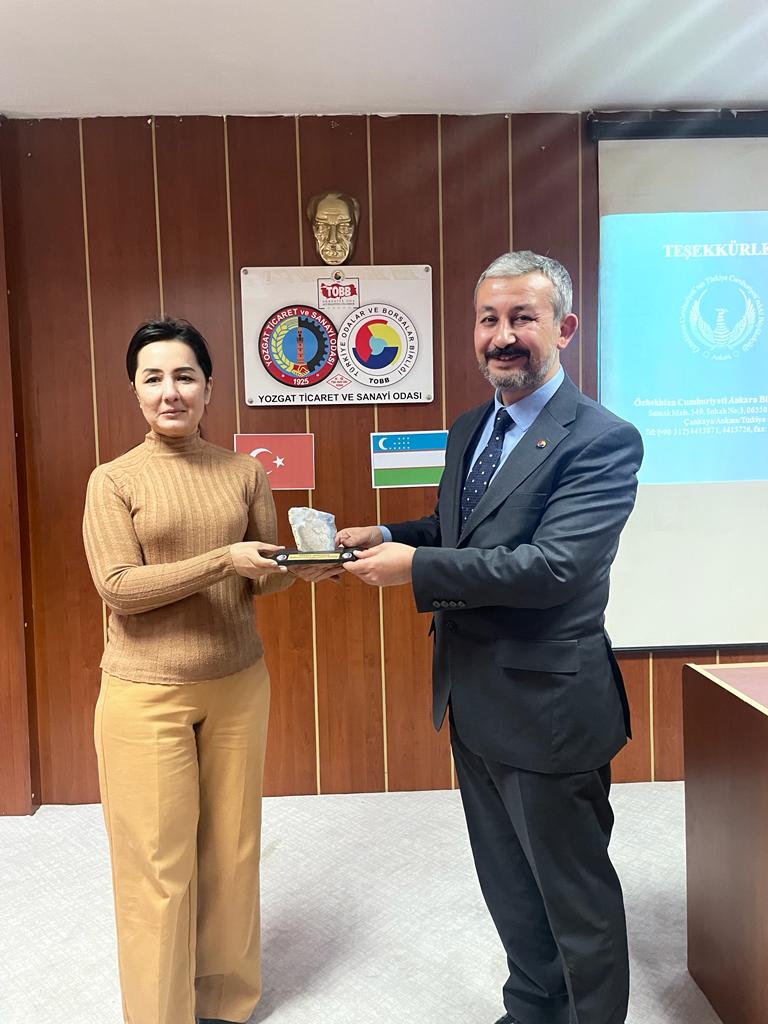 Özbekistan Cumhuriyeti Devlet yetkilileri, Maşrab Mamirov – Özbekistan Cumhuriyeti Ankara Büyükelçiliği Ticaret ve Ekonomi Müsteşarı, Hurşid Rahmanov – Özbekistan Cumhuriyeti Ankara Büyükelçiliği Başkâtipi ve Sevara Gafurova – Özbekistan Cumhuriyeti Dışişleri Bakanlığı Temsilcisi Yozgat’ta ticari incelemelerde bulundu.