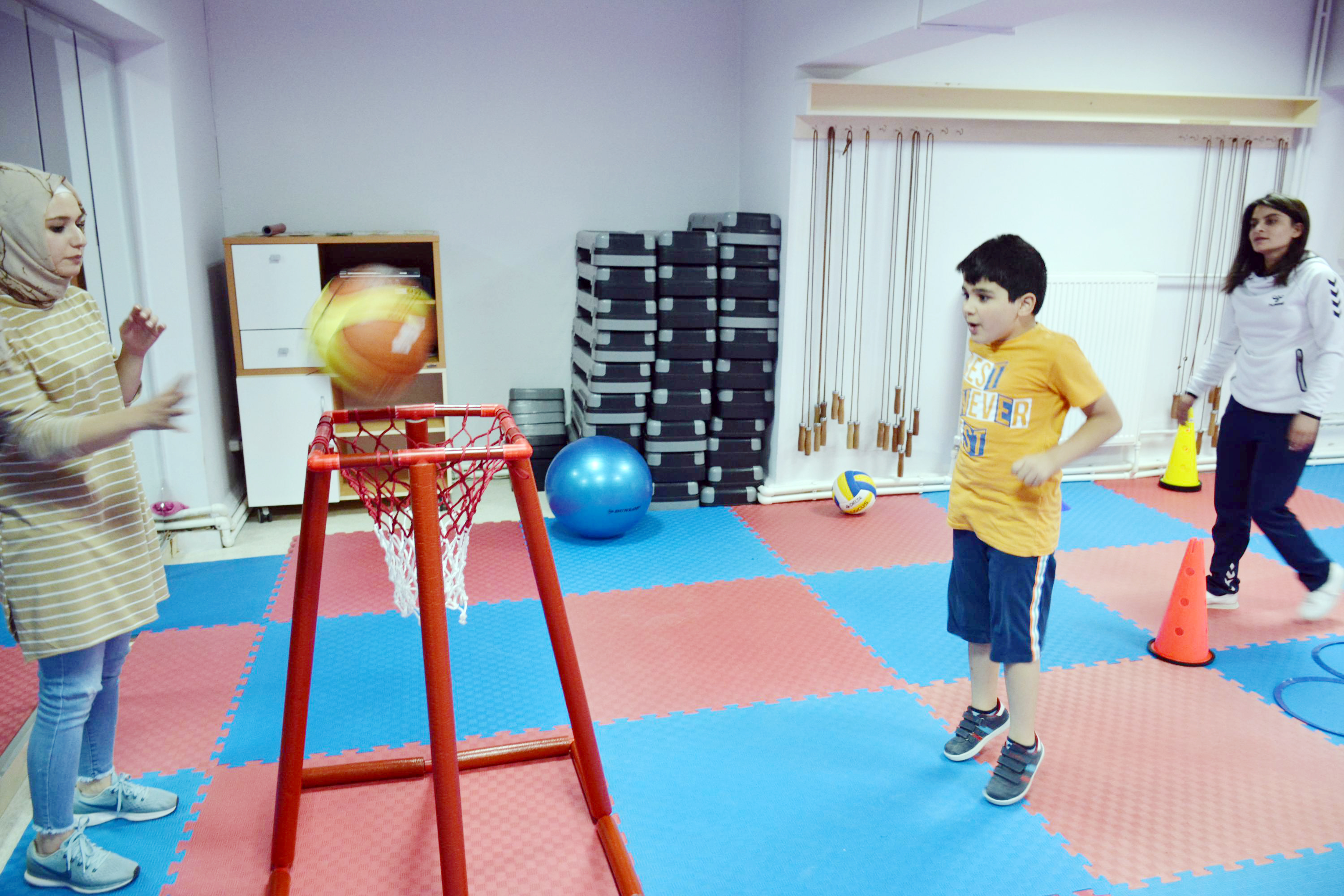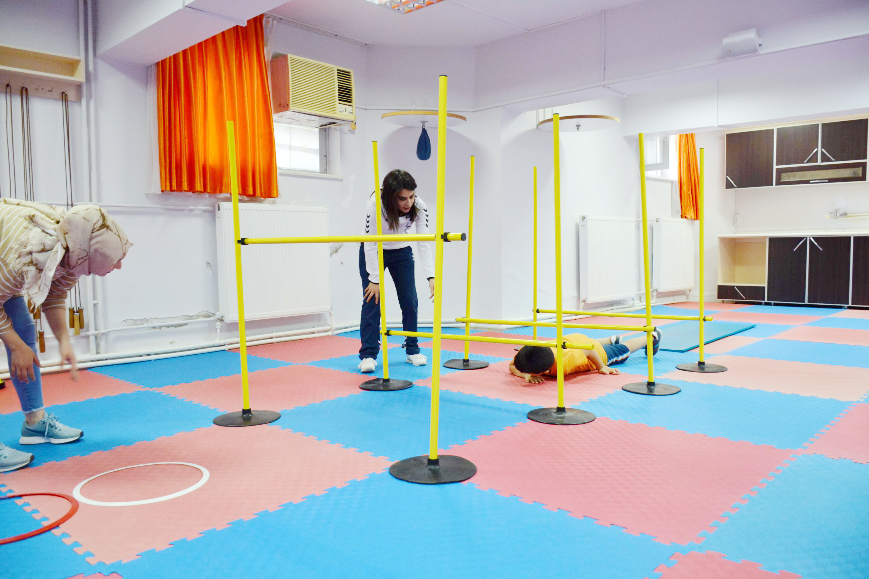 Sorgun Belediyesi İlyas Arslan Kültür Merkezi içerisinde yer alan spor salonunda, jimnastik ve eğitsel oyun faaliyetlerinin yanında ince ve kaba motor gelişimleri, bilişsel gelişim, dil gelişimi, sosyal – duygusal gelişimleri, öz bakım becerilerine katkıda bulunmak amacıyla otizm, down sendromlu 20 çocuğa spor eğitmenleri eşliğinde bireysel spor eğitimi veriliyor.