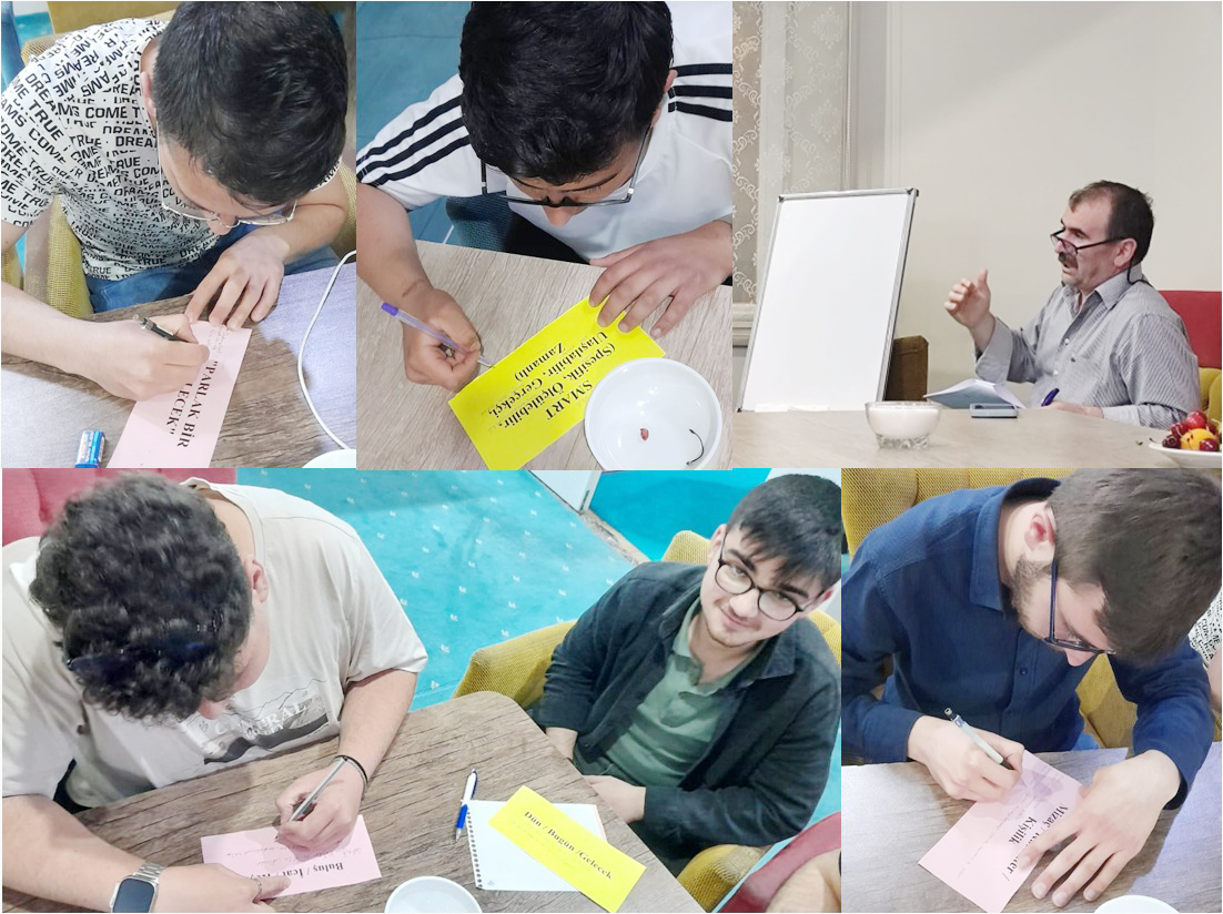 Yozgat Bozok Üniversitesi’nden Ahmet Demir’in öncülük ettiği toplantıda kavramların ve kelimelerin izinden tartışmalar açan Prof. Dr. Mustafa Böyükata, hayal, amaç ve hedefler, sınav, dün / bugün /gelecek, meslek / iş / kariyer, planlama, buluş / icat / keşif, mizaç / karakter / kişilik, bilgi / bilim / bilimsel bilgi, TÜBİTAK, azim / motivasyon / hırs, sınırları zorlamak, SMART (Spesifik, Ölçülebilir, Ulaşılabilir, Gerçekçi, Zamanlı), sınav kaygısı, stres yönetimi, mentorlük / rehberlik / koçluk, beceri geliştirme, eleştirel düşünme, problem çözme, takım çalışması, uyumluluk ve esneklik gibi kelime, sözcük, kavram ve ibareler üzerinden katılımcıların kritik yapmaları sağladı.