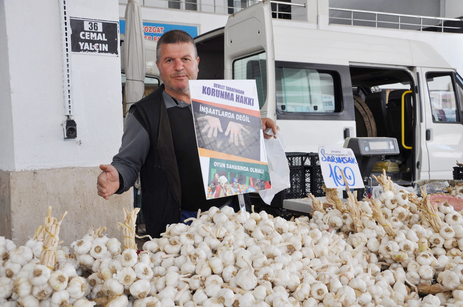 Yozgat’ta kurulan pazarda esnafla iş birliği yapılarak “Çocuk İşçiliğine Hayır!” yazılı pankartlar asıldı. Hem alışveriş yapan vatandaşlar hem de esnaf, çocukların eğitimden koparılmadan korunmasının toplumsal bir sorumluluk olduğu konusunda bilgilendirildi.