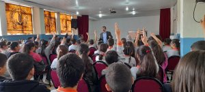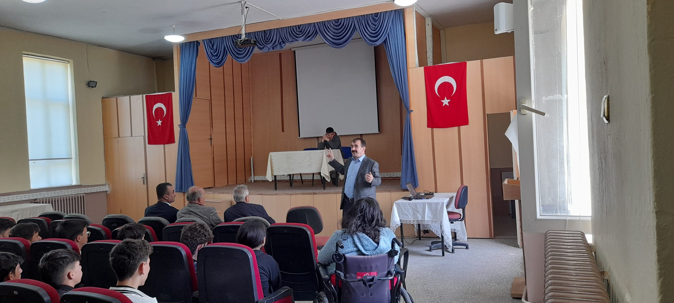 Öğleden sonra Ertuğrul Bey Mesleki Teknik Anadolu Lisesi Konferans Salonu’nda gerçekleştirilen etkinliklerin ilk oturumunda Çayıralan’daki liselerde okuyan gençlere hitap eden Prof. Dr. Mustafa Böyükata, “Güçlü Gelecek için Donanımlı Genç Olmak: Meslek, İş ve Kariyer Nedir?” başlıklı konuşmasında da hoşsohbet bir atmosfer oluşturdu, gençlerle şakalaşarak kimi zaman tatlı sert, kimi zaman zihinleri uyarıcı ve en çok ta düşünmeye sevk edici bilgiler paylaştı.