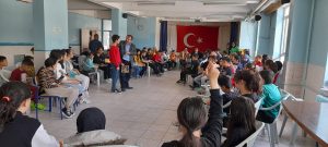 Günün sabah etkinliklerinde ziyaret edilen Şehit Yarbay Yusuf Turgut Ortaokulu Seminer Salonu ile deprem sebebiyle hasar gören Konuklar İHO öğrencilerinin de eğitim aldığı Çayıralan İHO Seminer Salonunda öğrencilerle gerçekleştirdiği iki toplantıda Prof. Dr. Mustafa Böyükata, “Bilimle uğraşmak istiyorum ama nasıl?” başlığı altında çocuklarla etkileşimli ve hoşsohbet söyleşiler gerçekleştirdi.