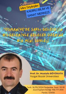 Bilim ve Teknoloji Haftası içerisinde öğrencileriyle akademisyen buluşması gerçekleştiren Osmaniye – Kadirli Bilim ve Sanat Merkezi (Kadirli BİLSEM), “Osmaniye’de Saklı Geleceğin Bilgeleriyle Gelecek Üzerine Bir Mini Söyleşi” konulu çevrimiçi toplantıda Yozgat Bozok Üniversitesi Öğretim Üyesi Prof. Dr. Mustafa Böyükata’yı dinlediler.
