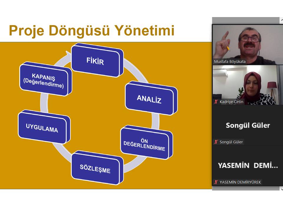 Proje Döngüsü Yönetimi, proje hazırlık ve uygulama süreçleri ile stratejik planlama konularında da bilgiler veren Prof. Dr. Böyükata, uzaktan eğitim araçlarıyla da bilgi edinmenin mümkün hale geldiğine değinerek, okulların günümüzde öğrencilerin de birbirlerini eğittiği ortamlar olduğunun altını çizdi. Bu yönden proje faaliyetleri ile öğrencilerin birlikte iş yapma becerilerinin de geliştiğini ifade etti.