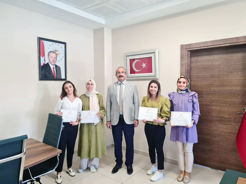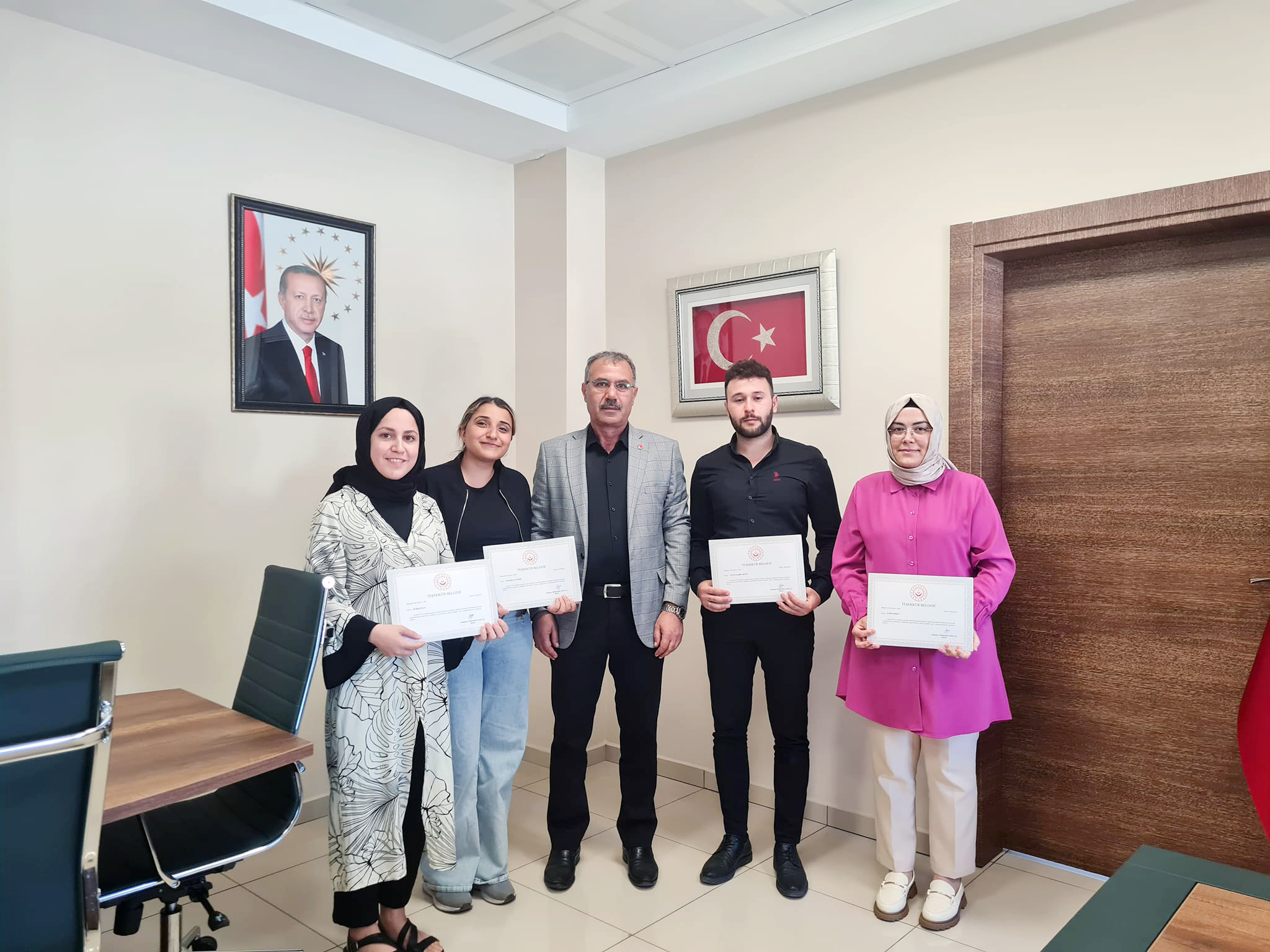 Yozgat Aile ve Sosyal Hizmetler İl Müdürü Abdullah Neşeli, ve Birim amirleri 6 Şubat tarihinde meydana gelen ve asrın felaketi olarak nitelendirilen Kahramanmaraş merkezli 11 ilimizi etkileyen büyük deprem felaketinde depremzede vatandaşlara Pisikososyal destek veren personeline Aile ve Sosyal Hizmetler Bakanı Haminur Özdemir Göktaş tarafından gönderilen teşekkür belgelerini verdi. Öz verili çalışmalarından dolayı personeline teşekkür eden Neşeli, Bakan Göktaş tarafından gönderilen belgeleri makamında sahiplerine teslim etti.