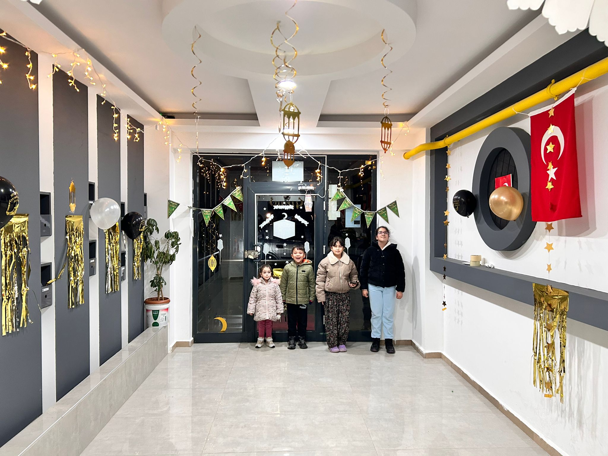 Yozgat’ta çocukların Ramazan ayı için yaptığı apartman süsleme çalışması, site sakinlerinin de dikkatini çekti. B Blok’ta yaşayan çocuklar, Ramazan’ın birlik ve paylaşma ruhunu yansıtmak için apartman girişinde küçük ama anlamlı bir düzenleme yaptı. El emeğiyle hazırlanan yazılar, renkli süsler ve ışıklandırmalarla giriş alanı adeta bayram yerine döndü.