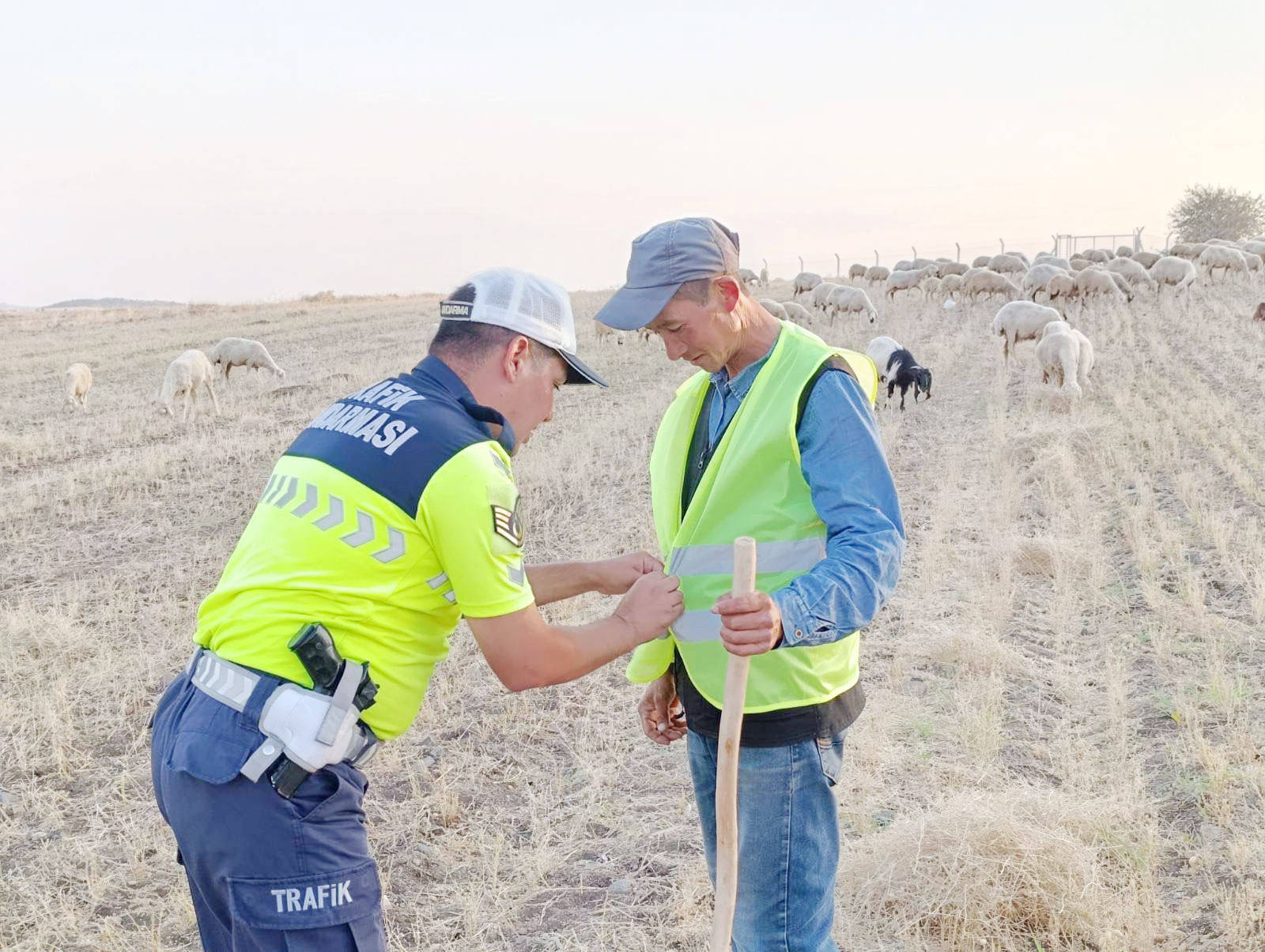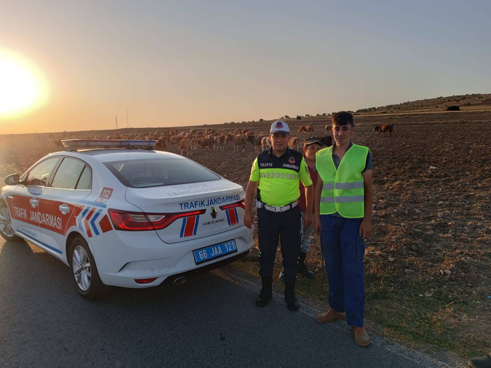 Yozgat Merkez İlçe Jandarma Komutanlığı Trafik Jandarma ekipleri, il ve köy yolları yakınlarında hayvan sürüsü otlatan çobanlara yönelik önemli bir bilgilendirme ve farkındalık çalışması yürütüyor.