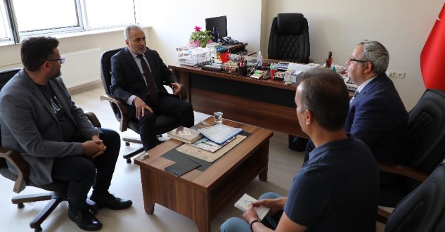 Ziyarette Yüksekokul Müdürü Dr. Öğr. Üyesi Mehmet Ertuğ Yavuz, Rektör Prof. Dr. Ahmet Karadağ’a yüksekokulun fiziki ve genel durumu hakkında bilgi verdi.