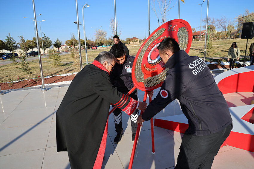 Tören, Rektör Yardımcısı Prof. Dr. Güngör Yılmaz’ın Atatürk Anıtı’na çelenk sunmasıyla başladı. Saat 09.05’te sirenler eşliğinde iki dakikalık saygı duruşu yapıldı ve İstiklâl Marşı’nın okunmasıyla program sona erdi.