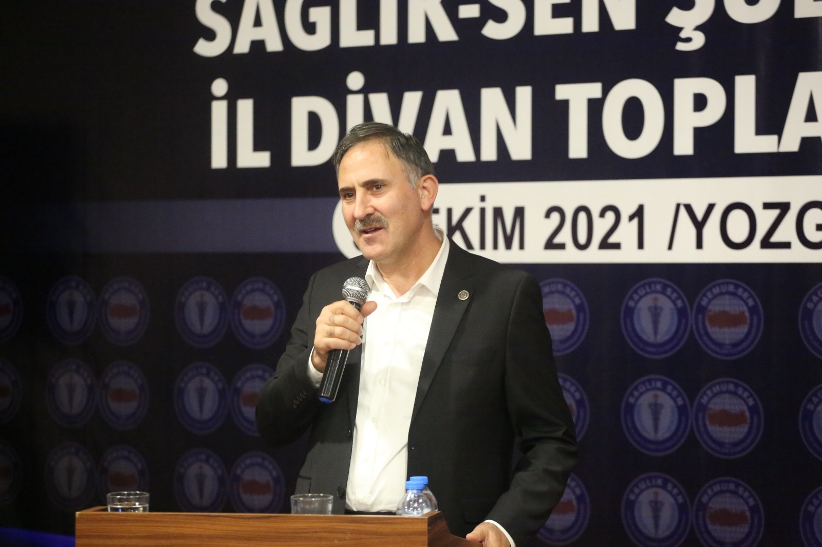 Sorgun Sefa Termal otelde düzenlenen toplantıda konuşan Genel Başkan Durmuş, 6. Dönem Toplu Sözleşme kazanımları hakkında bilgi verdi. Durmuş, sabit ek ödemenin yüzde 20 oranında artırılması, sözleşmelilere kadro, 3600 ek gösterge çalışmasının yapılması, sosyal hizmet tazminatının artırılması gibi önemli kazanımlarla sağlık ve sosyal hizmet çalışanlarının yüzlerini güldürdüklerini dile getirdi.