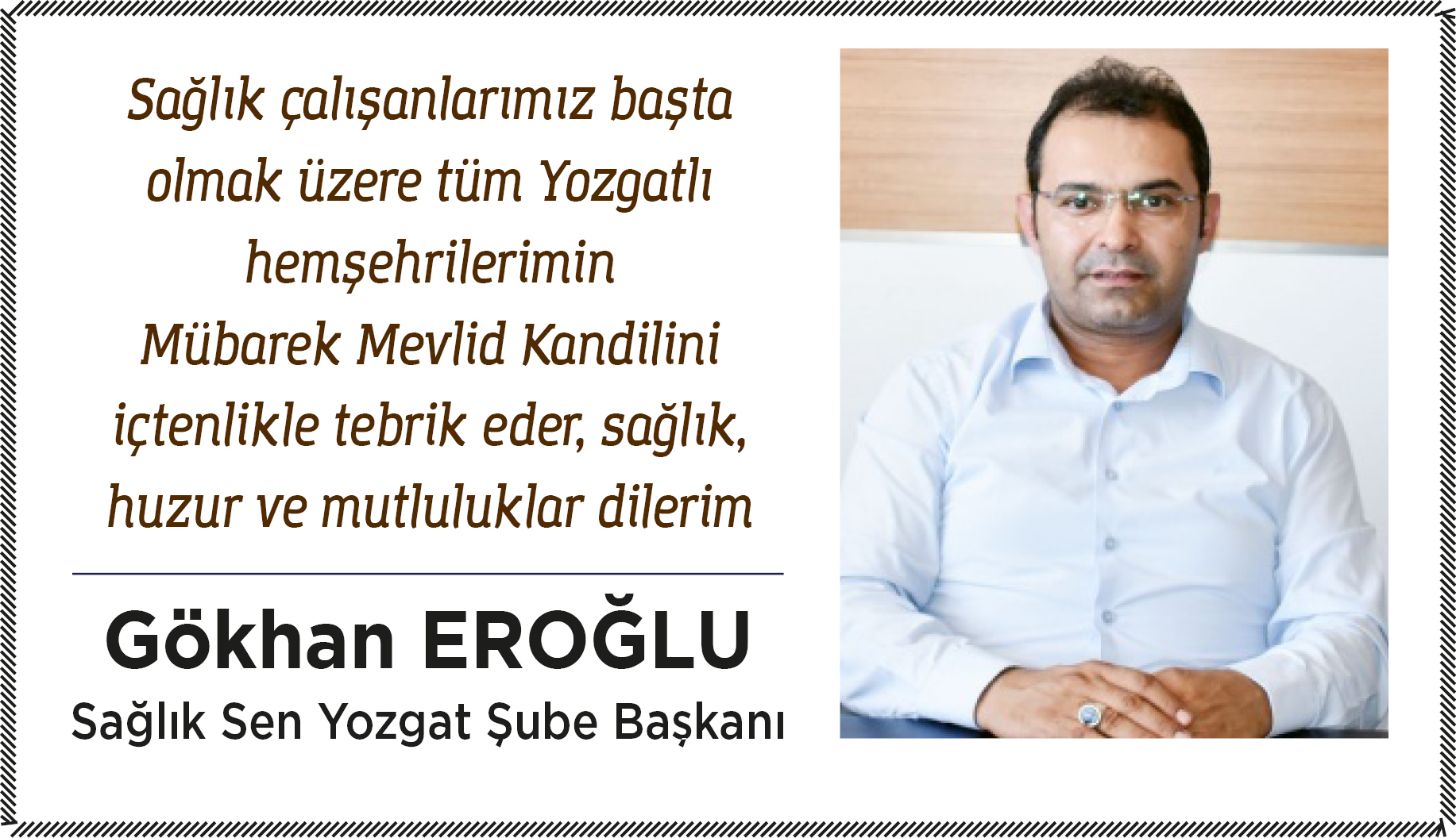 Ana Sayfa › Yaşam › Sağlık-Sen Yozgat Şube Başkanı Gökhan Eroğlu’ndan Mevlid Kandili mesajı Sağlık-Sen Yozgat Şube Başkanı Gökhan Eroğlu’ndan Mevlid Kandili mesajı TÜM YAZILARI Giriş: 07-10-2022 12:03 267 Yaşam ABONE OL