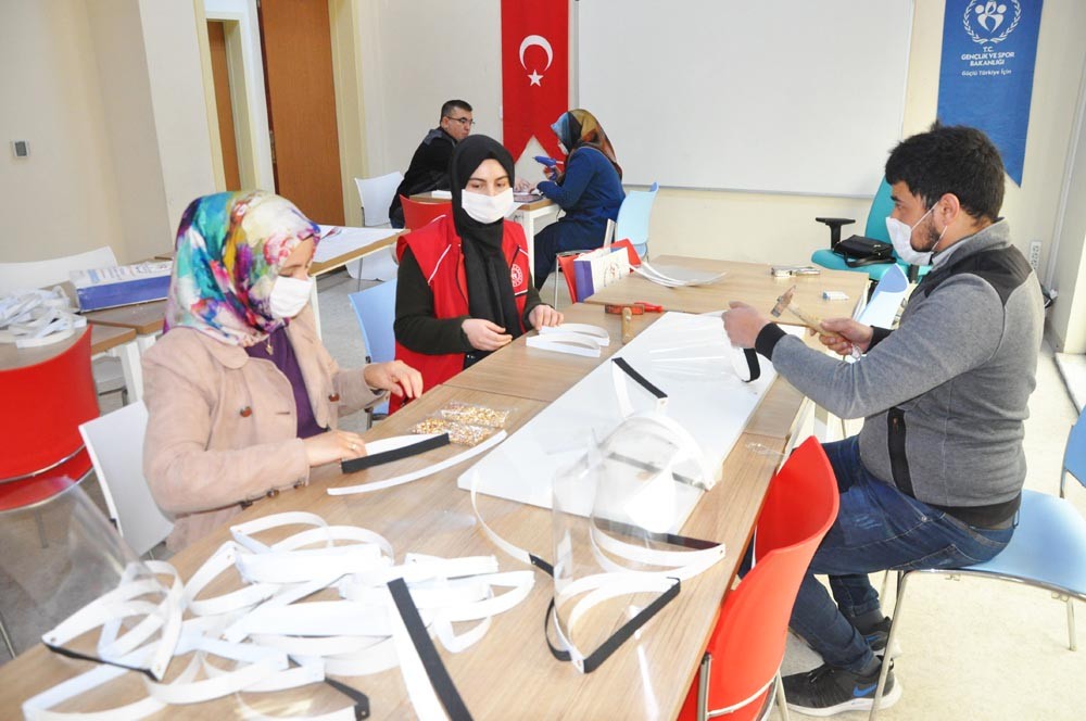 Sorgun Gençlik Merkezi, korona virüs (Covid-19) salgını nedeniyle tüm çalışmalarına ara verip sağlık çalışanları için siperli maske üretimine başladı.