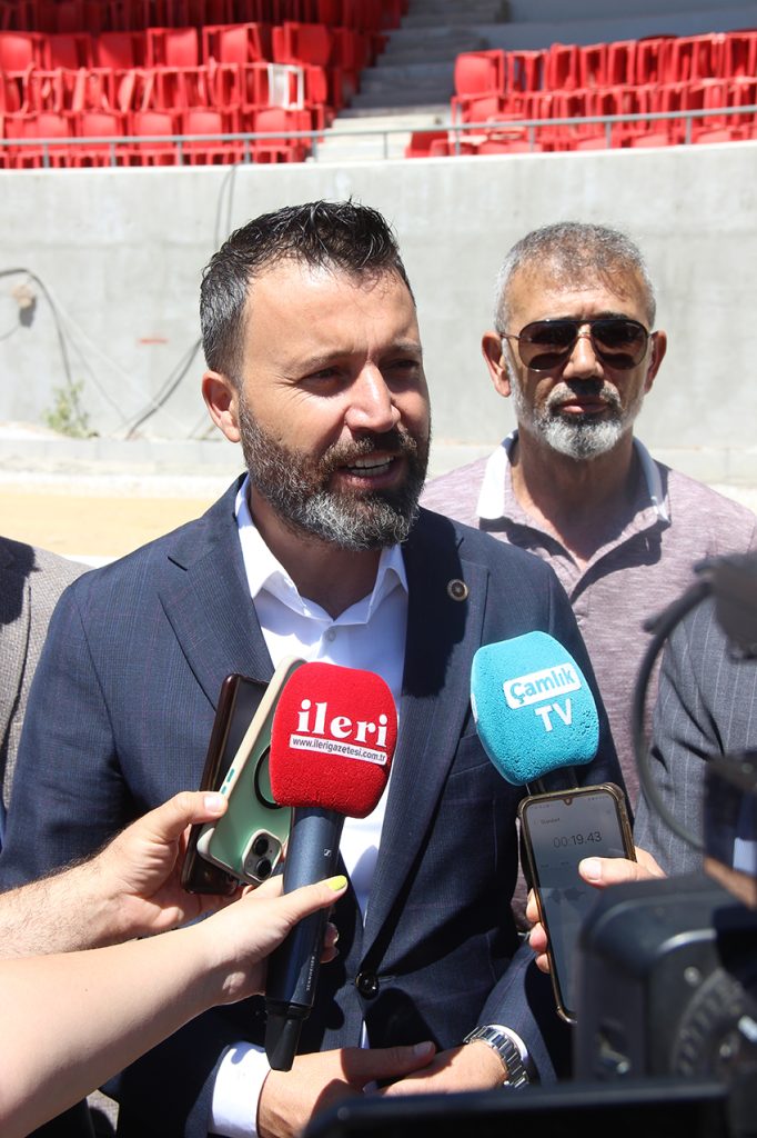 Şen Mermer Firması Genel Koordinatörü Gökhan Atalay ise imalatlarda sona yaklaşıldığını belirterek, “Ekim sonunda teslim etmek üzere sayın vekilimize söz verdik. Satın almalarımız tamamlandı, son uygulamaları yapıyoruz. Bir aksilik olmazsa ekim sonunda stadımızı teslim edeceğiz” şeklinde konuştu. / Osman Tolga YILMAZ